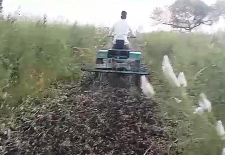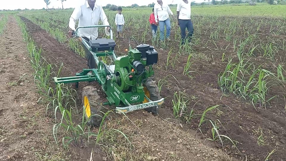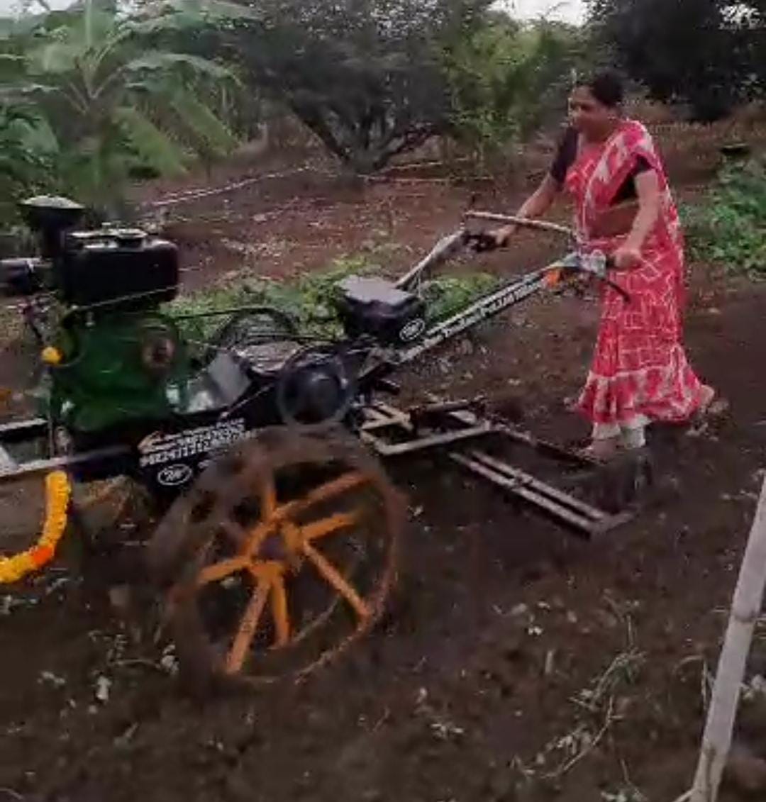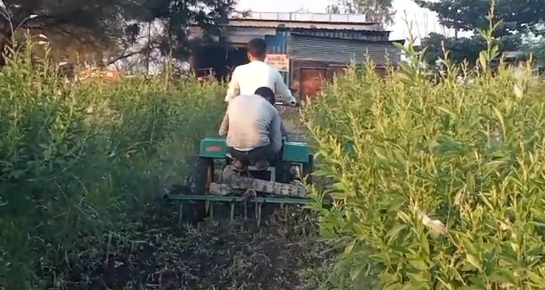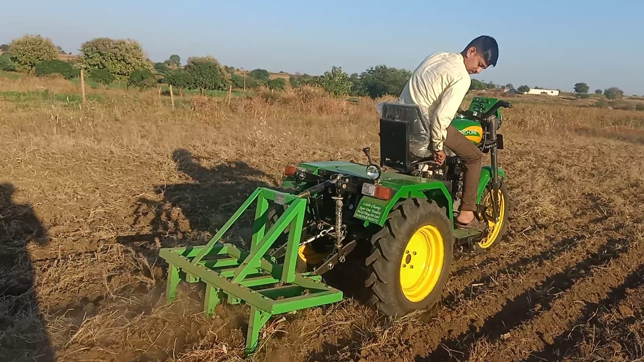 Magbul Chandsab Shaikh's native Murambi house in Chachur taluka was in dire straits where his elder brother Mansurbhai Shaikh was working as a tractor repairer at Nilanga, with whom Magbul Shaikh learned tractor repair. With twenty years of experience, Magbul Shaikh created a 10hp three-wheeled Bullet-like tractor, keeping in mind the challenges faced by the farmer. The tractor can easily work in four feet rain. This tractor mounted implements are Tiri, V-Pali, Straight-Pali, Planter, Sprayer, Dumping Trailer, Rotavator, Soybean, Chana, Udid, Moong, Wheat, Dhan and other crops are harvested and heaped at a distance of 20 feet. runs on This technology can be used in an easy way, which is not available in any cutter so far. Especially with the help of this tractor this tractor can do the grazing which has become a serious problem for the farmers nowadays. A small powerwidder is also made in 5hp for another colpani.